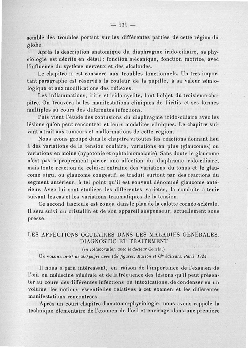 Paris, Masson et Cie, 1924.