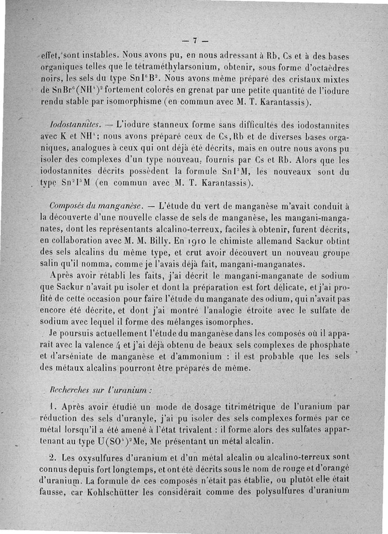 Notice sur les travaux scientifiques