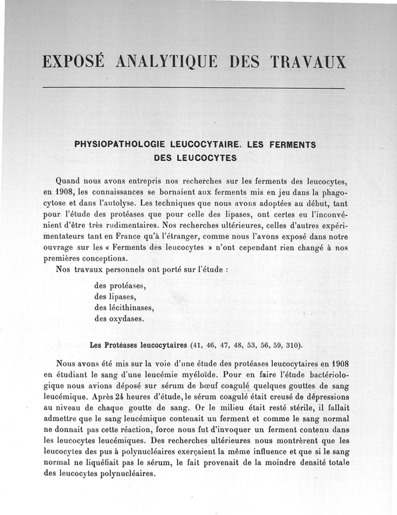 Exposé des titres des travaux scientifiques