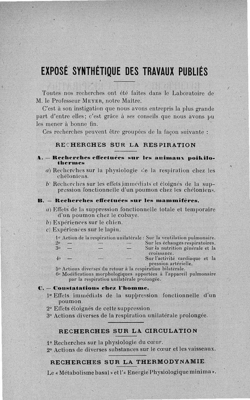 Exposé des titres et travaux scientifiques