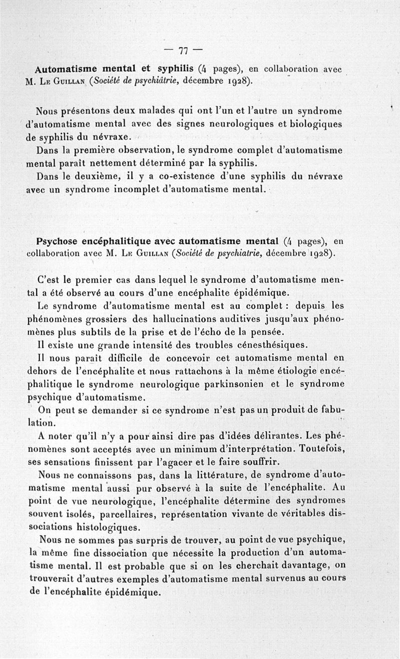 Titres et travaux scientifiques. 1929