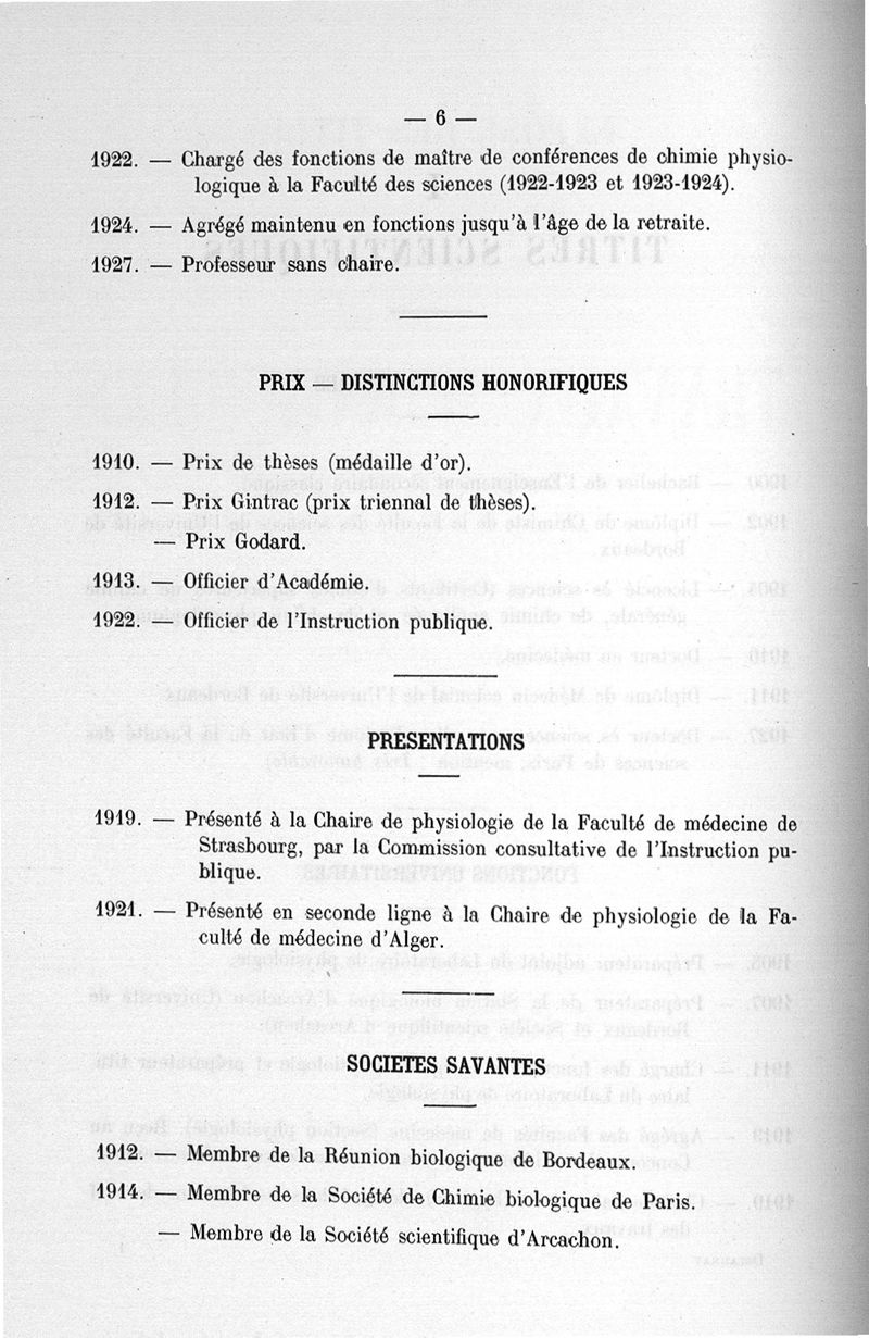 Exposé des titres et travaux scientifiques