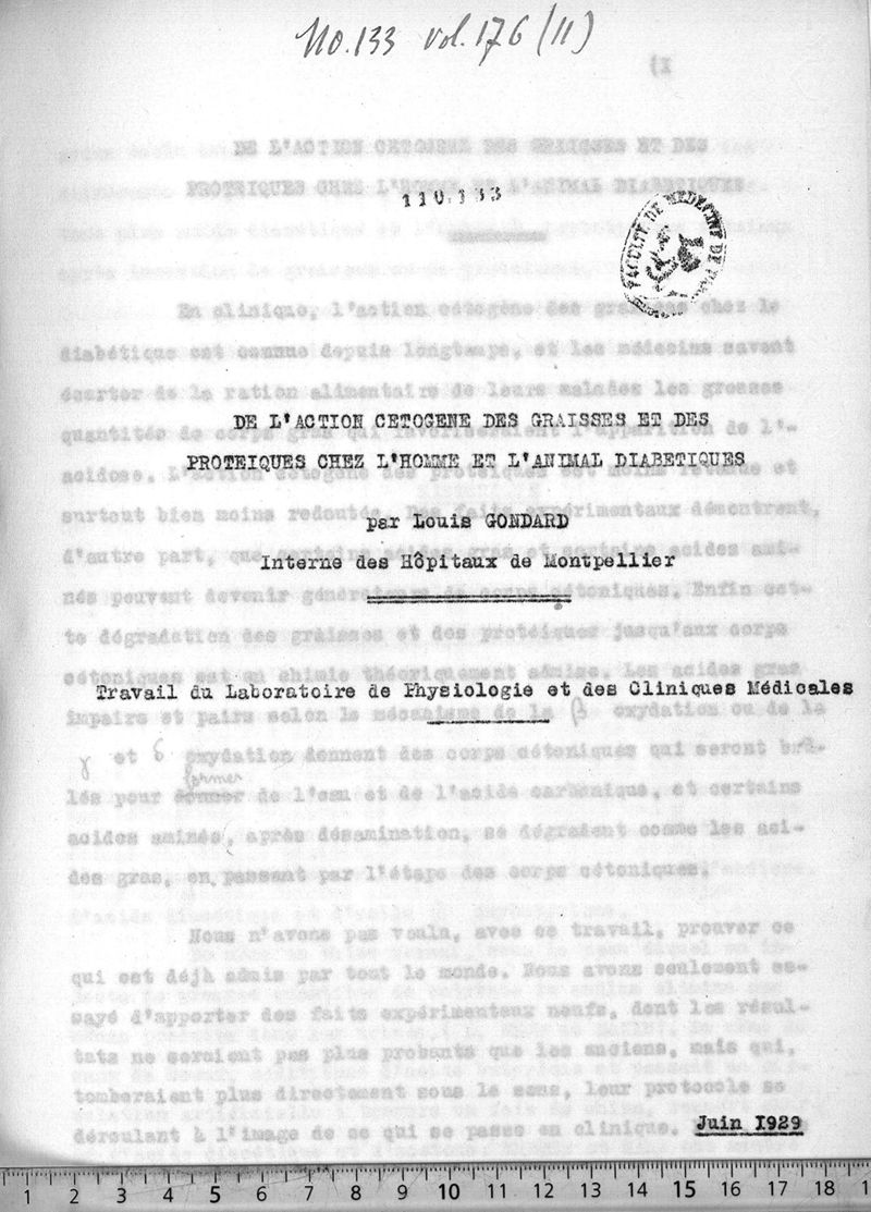 De l'actioin ceteogene des graisses et des proteiques chez l'homme et l'animal diabètiques. Travail du Laboratoire de physiologie et des cliniques médicales. Prix Lescellière-Lafosse