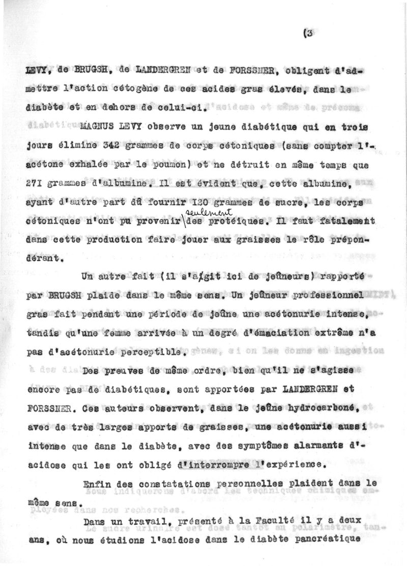 De l'actioin ceteogene des graisses et des proteiques chez l'homme et l'animal diabètiques. Travail du Laboratoire de physiologie et des cliniques médicales. Prix Lescellière-Lafosse