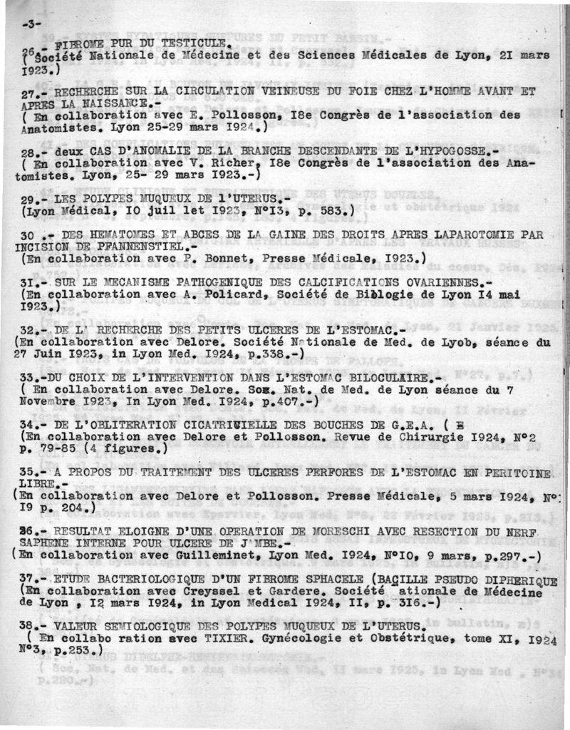 Travaux scientifiques, liste chronologique