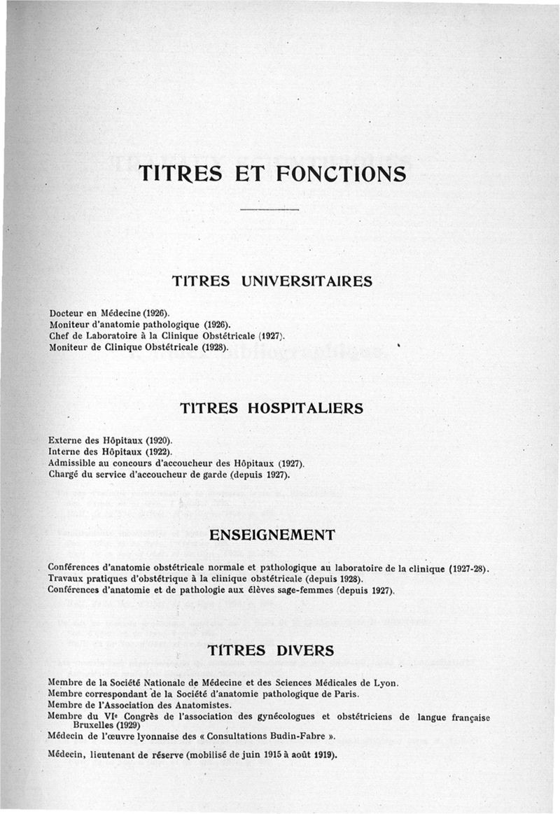 Exposé des titres et travaux scientifiques