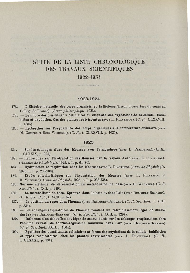 Exposé des travaux scientifiques supplément 1922-1934