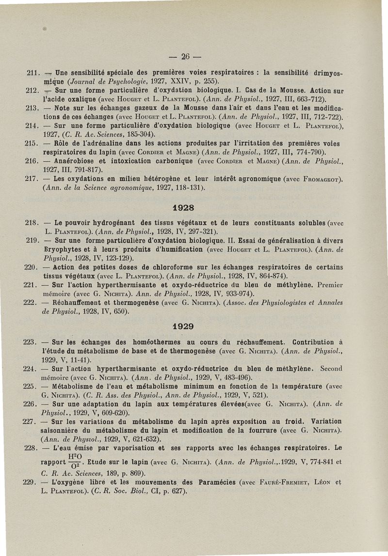 Exposé des travaux scientifiques supplément 1922-1934