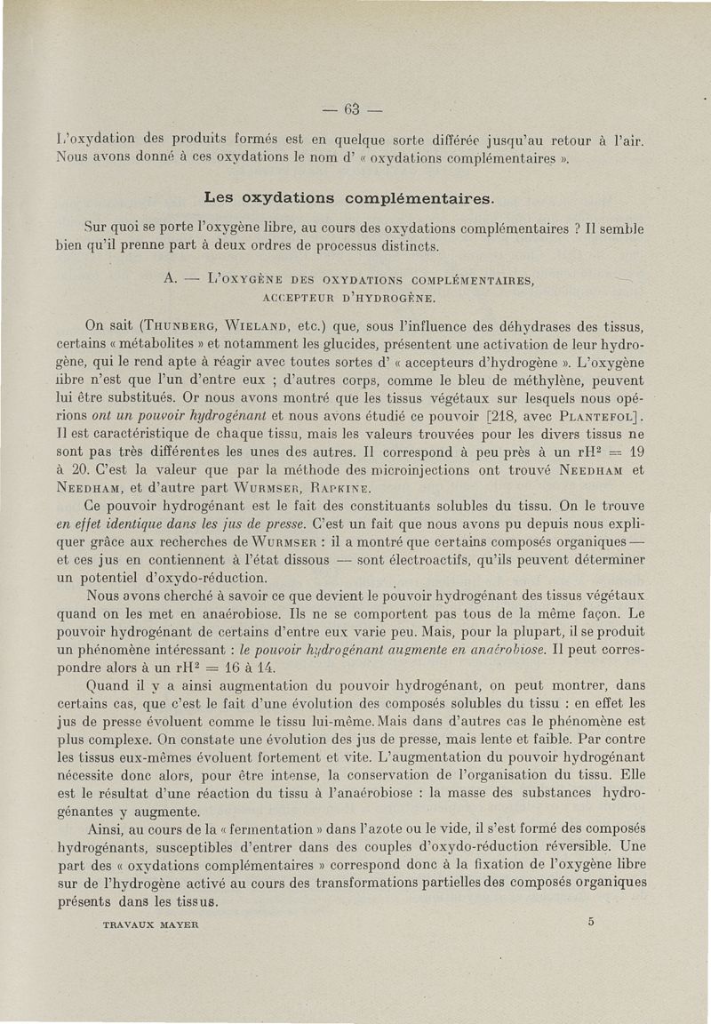 Exposé des travaux scientifiques supplément 1922-1934