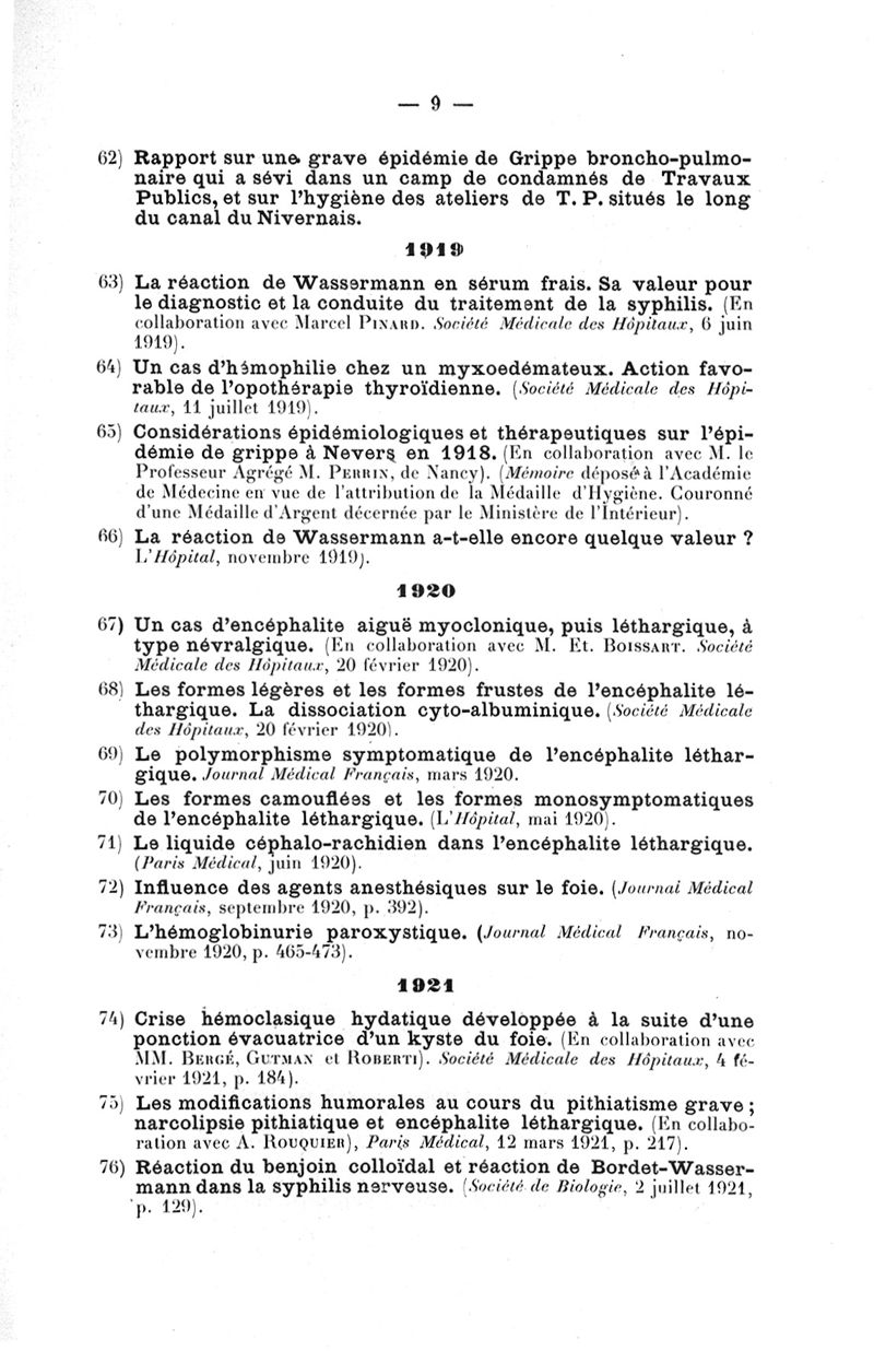Titres et travaux scientifiquesAddendum. 1913-1923