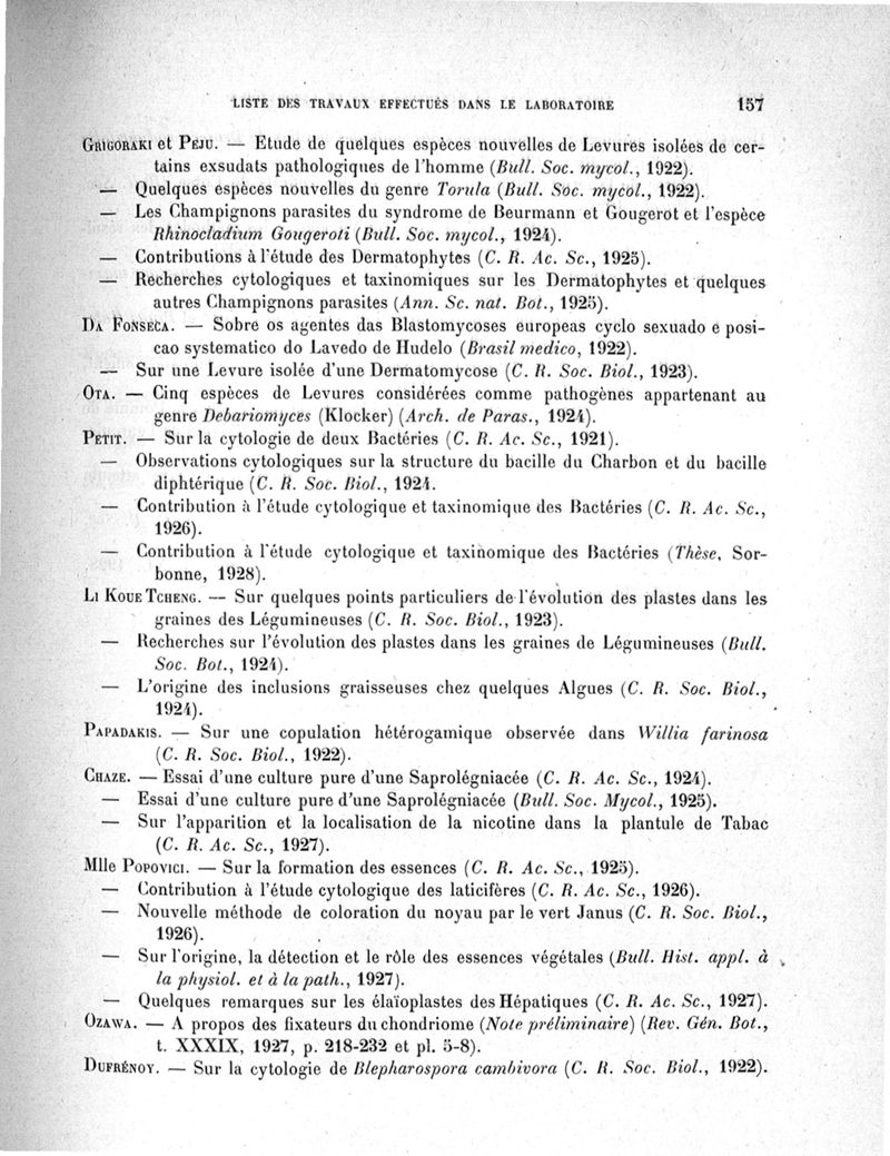 Titres et travaux scientifiques 1900-1928