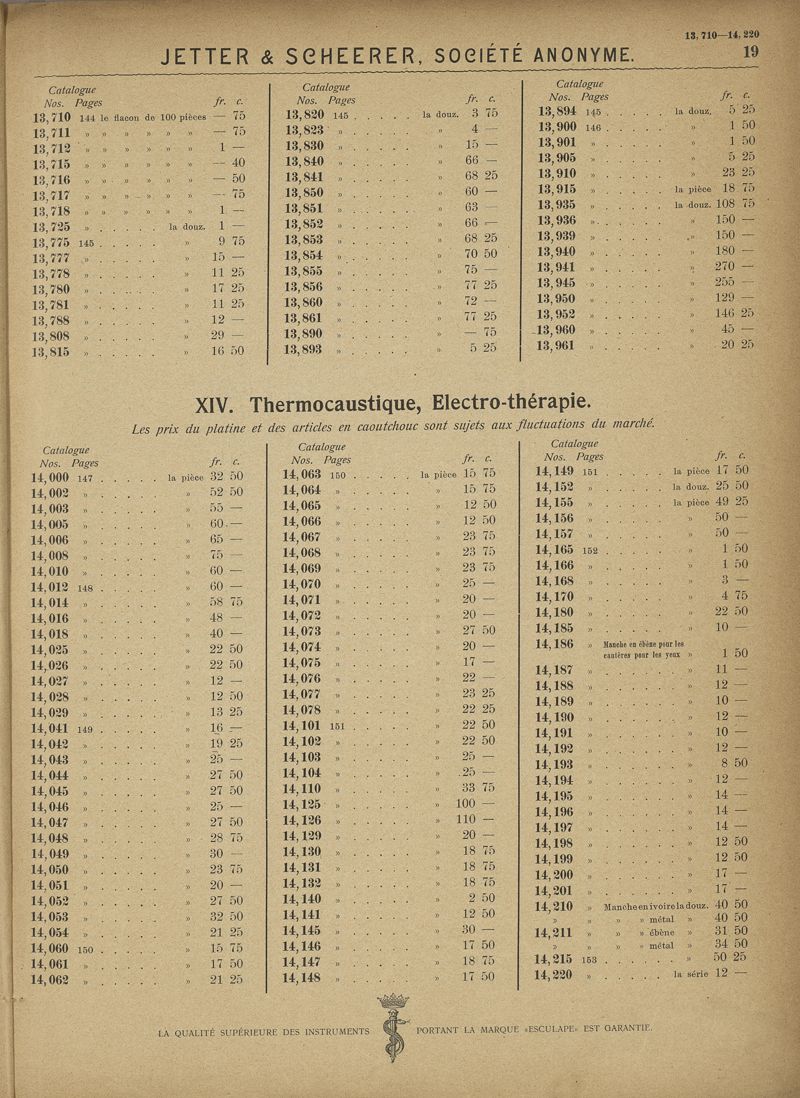 Prix-courant du catalogue illustré : Fabrique d'instruments de chirurgie Tuttlingen (Allemagne du sud) -- Jetter & Scheerer