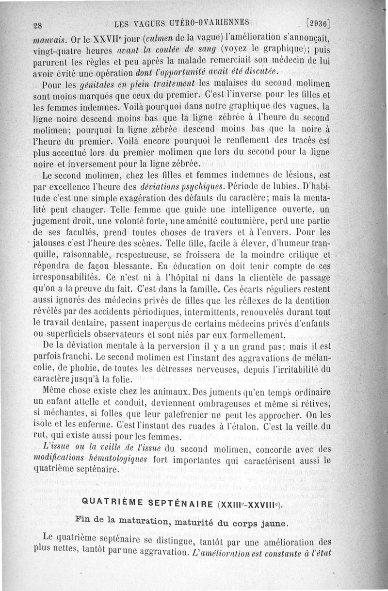 Les vagues utéro-ovariennes : physiologie et psychologie normales et pathologiques de la femme