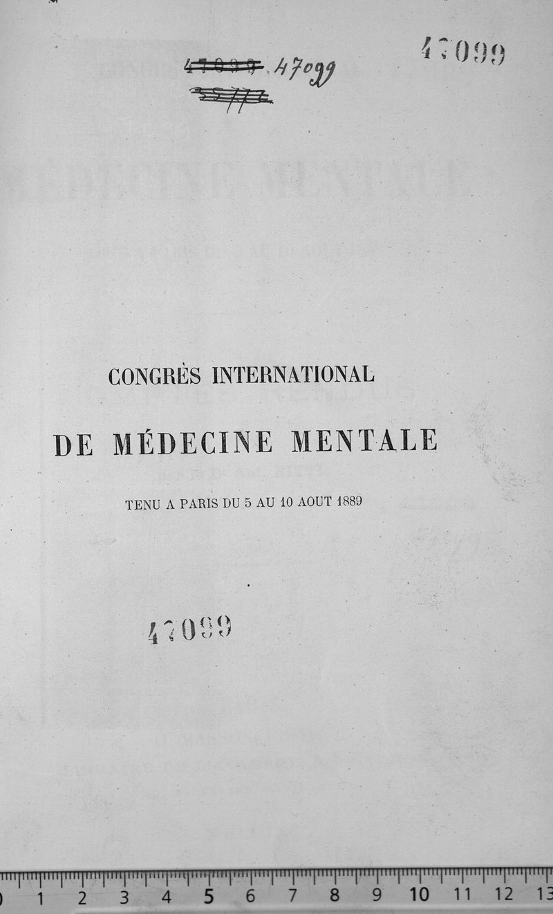 Congrès international de médecine mentale tenu à Paris du 5 au 10 août 1889. Comptes rendus publiés par le Dr Ant. Ritti, secrétaire général du congrès