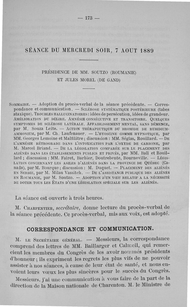 Congrès international de médecine mentale tenu à Paris du 5 au 10 août 1889. Comptes rendus publiés par le Dr Ant. Ritti, secrétaire général du congrès