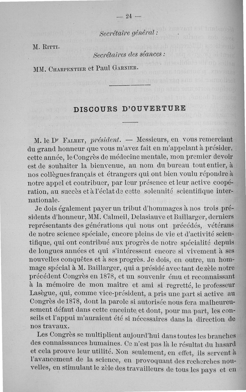 Congrès international de médecine mentale tenu à Paris du 5 au 10 août 1889. Comptes rendus publiés par le Dr Ant. Ritti, secrétaire général du congrès