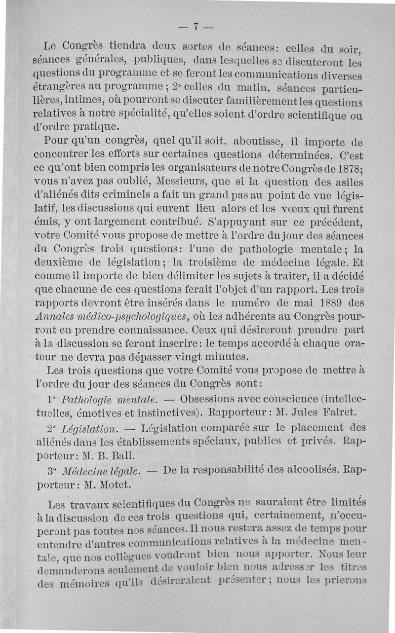 Congrès international de médecine mentale tenu à Paris du 5 au 10 août 1889. Comptes rendus publiés par le Dr Ant. Ritti, secrétaire général du congrès