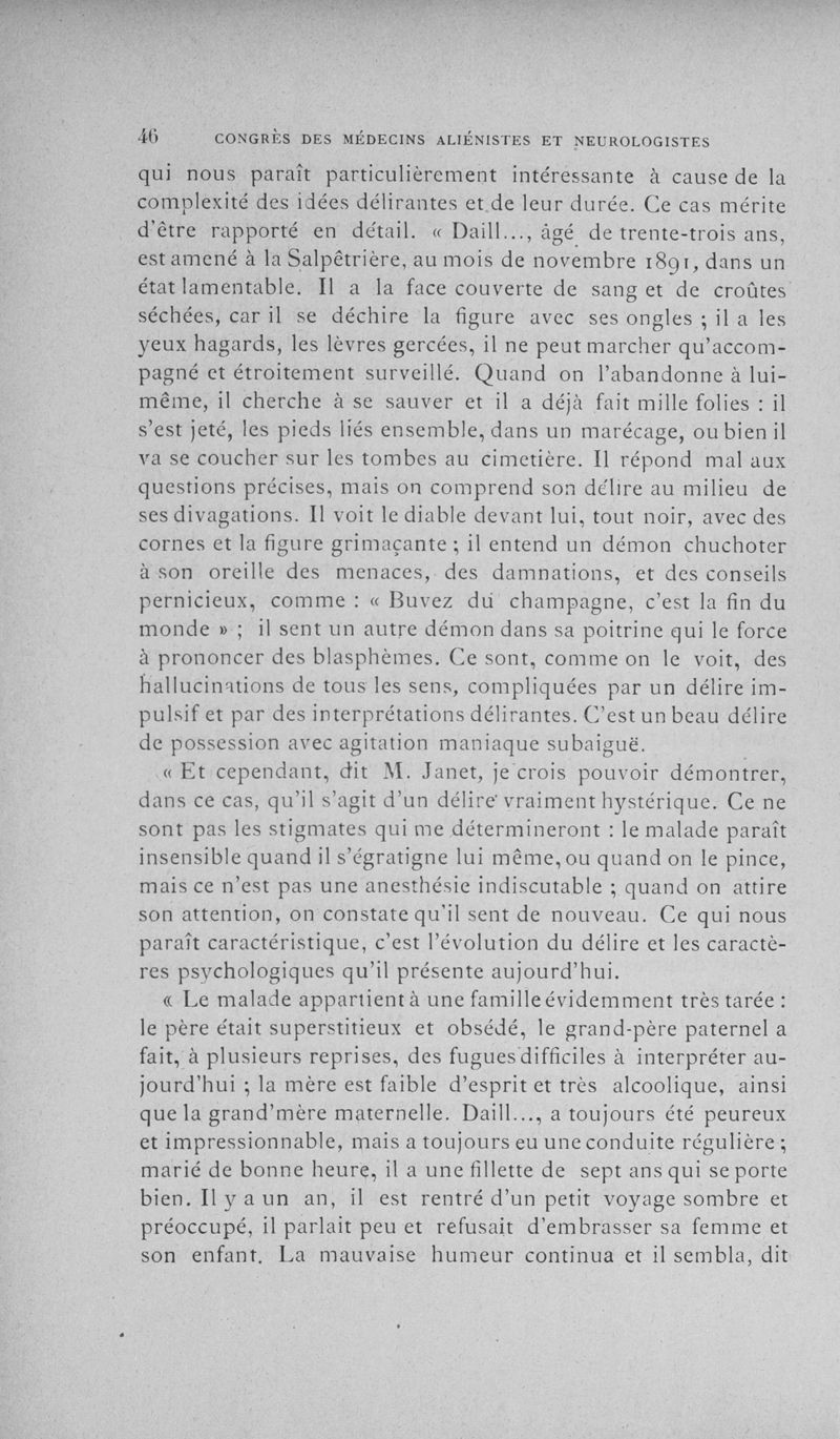 Congrès des médecins aliénistes et neurologistes de France et des pays de langue française : cinquième session tenue à Clermont-Ferrand du 6 au 11 août 1894