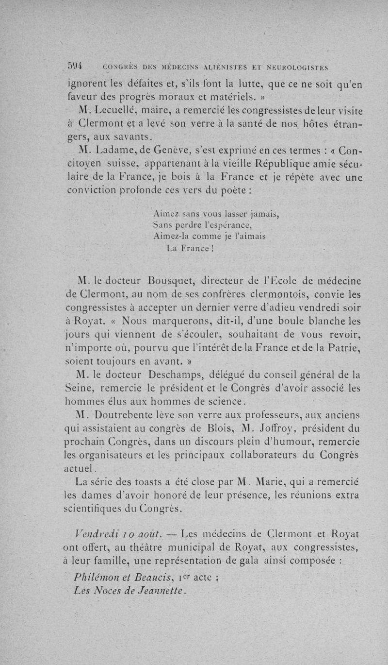 Congrès des médecins aliénistes et neurologistes de France et des pays de langue française : cinquième session tenue à Clermont-Ferrand du 6 au 11 août 1894