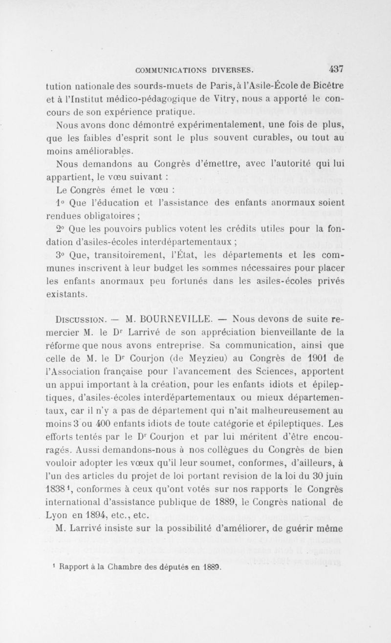 Congrès des médecins aliénistes et neurologistes de France et des pays de langue française : XII° session tenue à Grenoble du 1er au 7 août 1902. Volume II : Comptes rendus