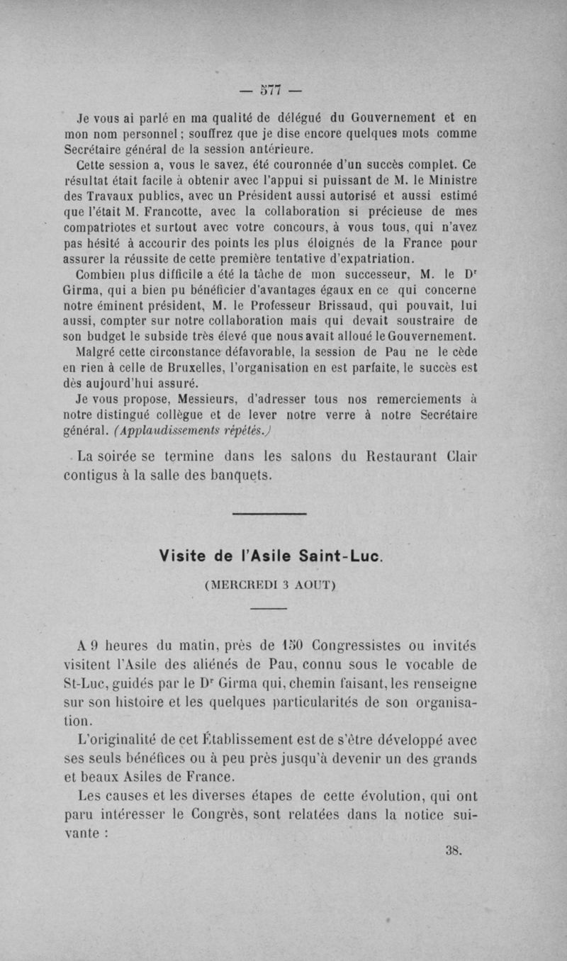 Congrès des médecins aliénistes et neurologistes de France et des pays de langue française : XIV° session, tenue à Pau du 1er au 7 août 1904. Volume II : Comptes rendus
