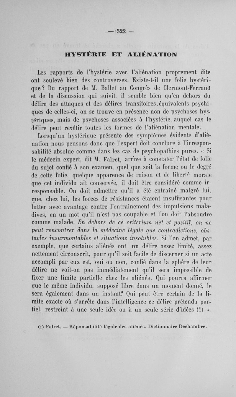 Congrès des médecins aliénistes et neurologistes de France et des pays de langue française : seizième session, tenue à Lille du 1er au 7 août 1906. Volume I : Rapports