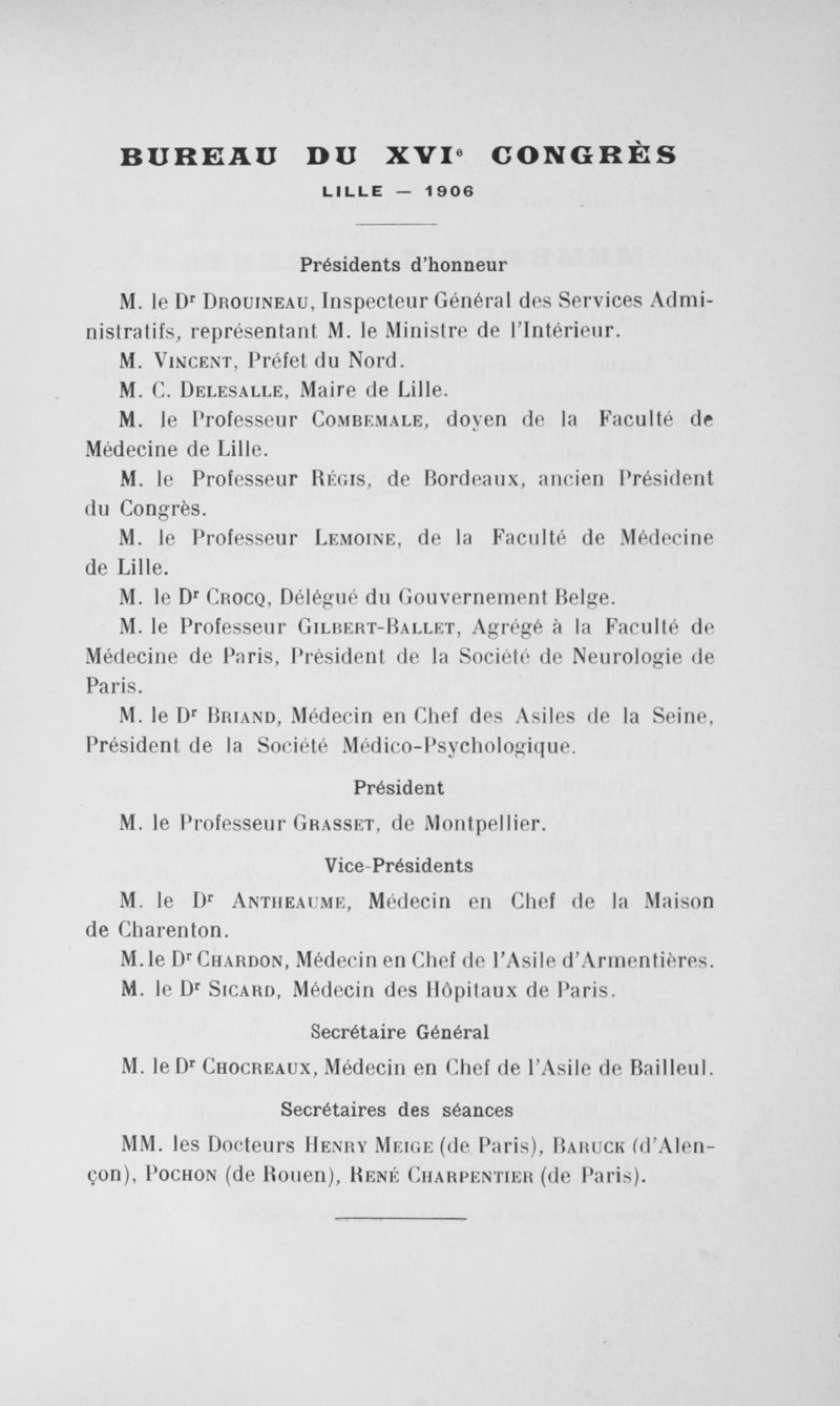 Congrès des médecins aliénistes et neurologistes de France et des pays de langue française : seizième session, tenue à Lille du 1er au 7 août 1906. Volume II (Communications diverses et discussions)