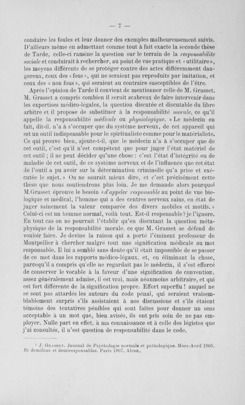 Congrès des médecins aliénistes et neurologistes de France et des pays de langue française : XVII° session tenue à Genève et Lausanne, du 1er au 7 août 1907. Volume I : Rapports