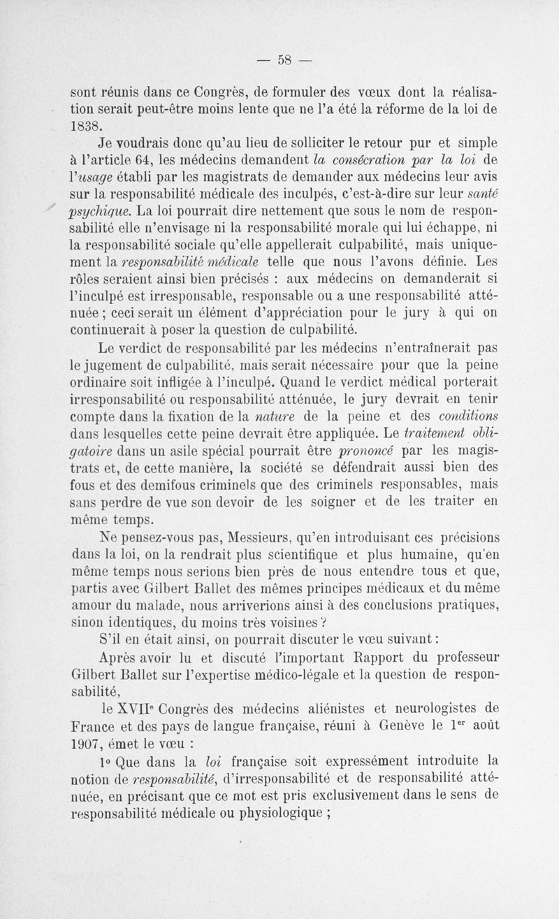 Congrès des médecins aliénistes et neurologistes de France et des pays de langue française : XVII° session tenue à Genève et Lausanne, du 1er au 7 août 1907. Volume II : Comptes rendus