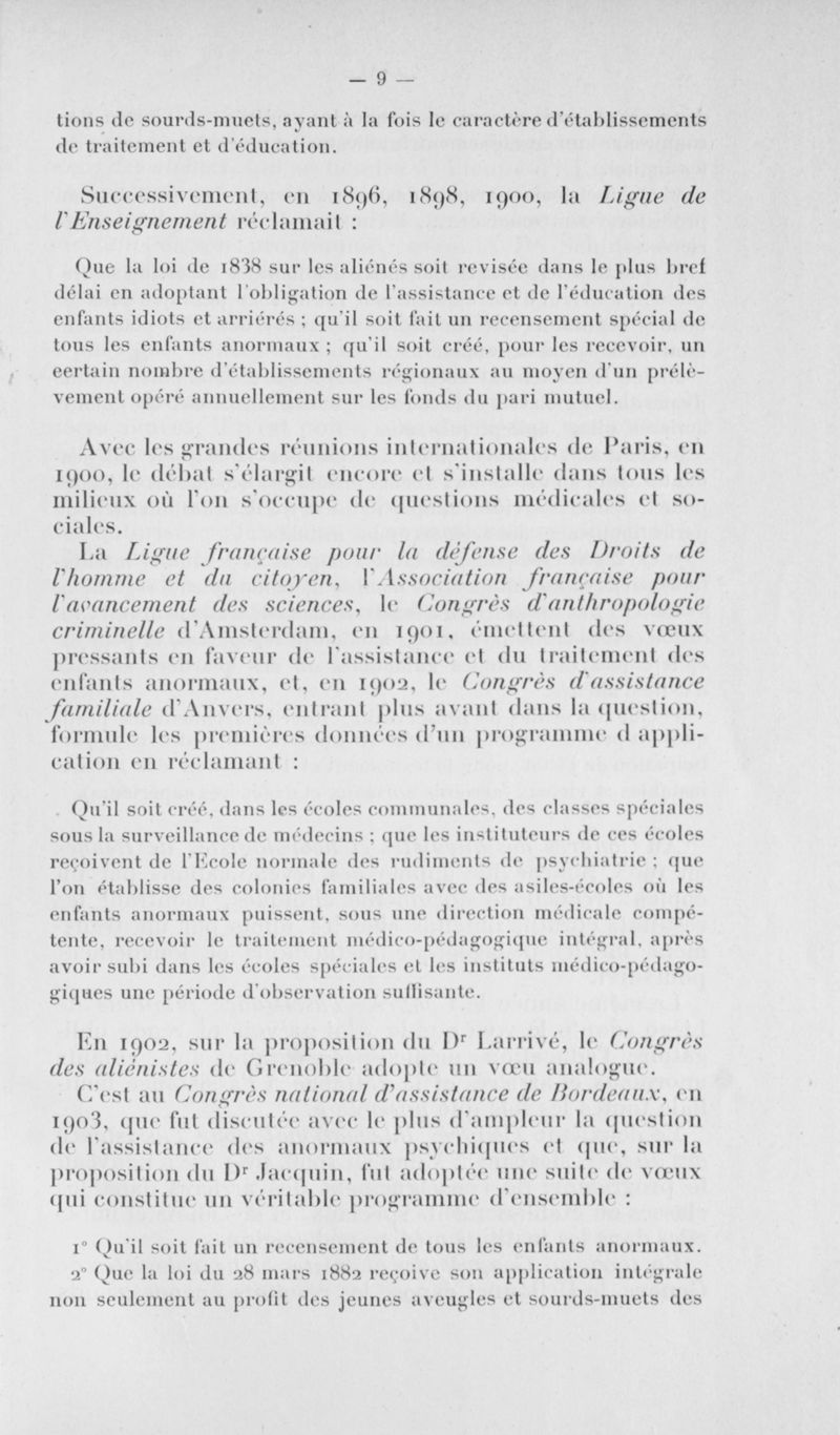 L'assistance des enfants anormaux
