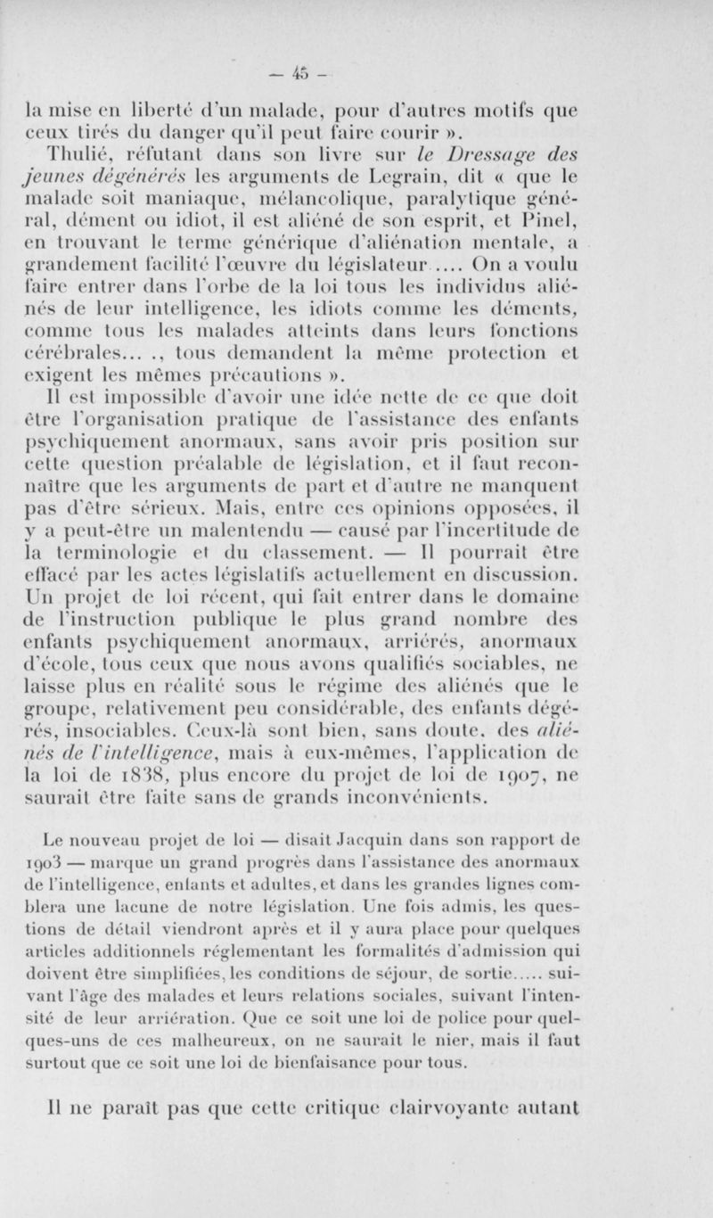 L'assistance des enfants anormaux