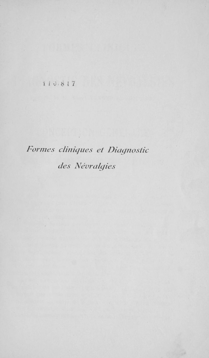 Formes cliniques et diagnostic des névralgies