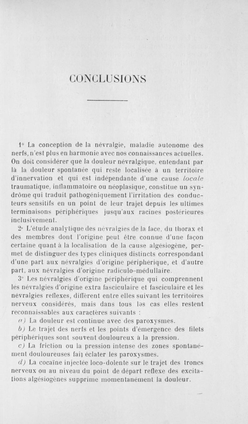Formes cliniques et diagnostic des névralgies