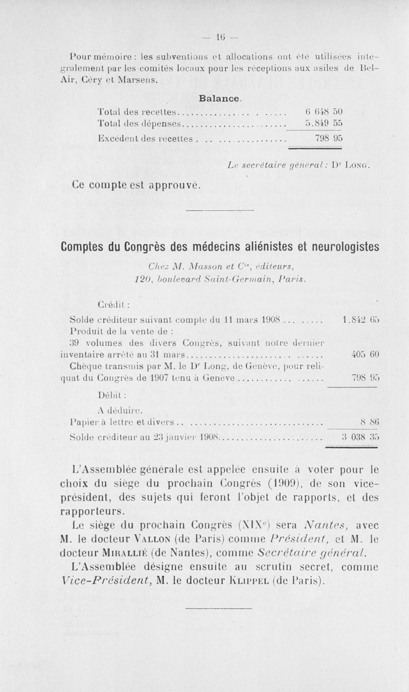 Congrès des médecins aliénistes et neurologistes de France et des pays de langue française : XVIII° session tenue à Dijon du 3 au 9 août 1908. Comptes rendus (discussions et communications diverses)