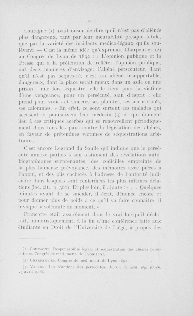 De la valeur du témoignage des aliénés en justice