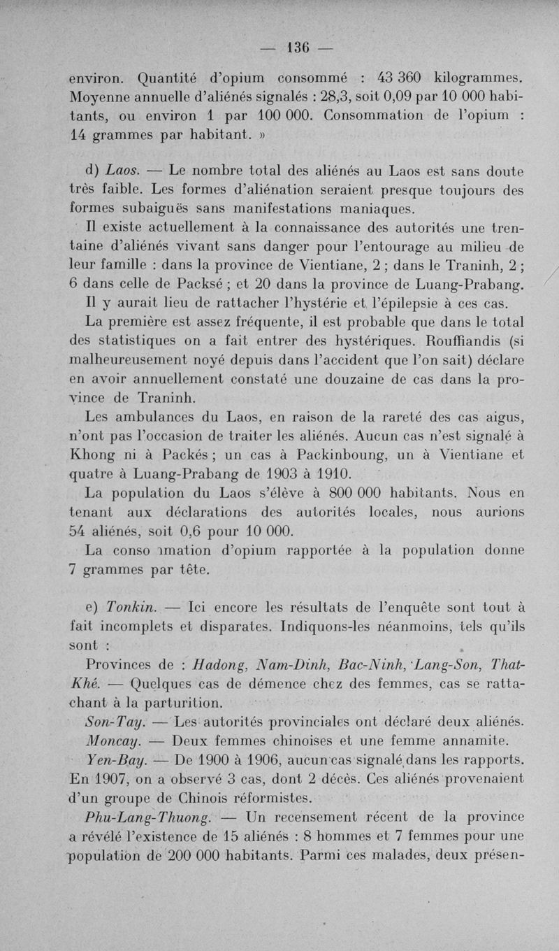 L'assistance des aliénés aux colonies