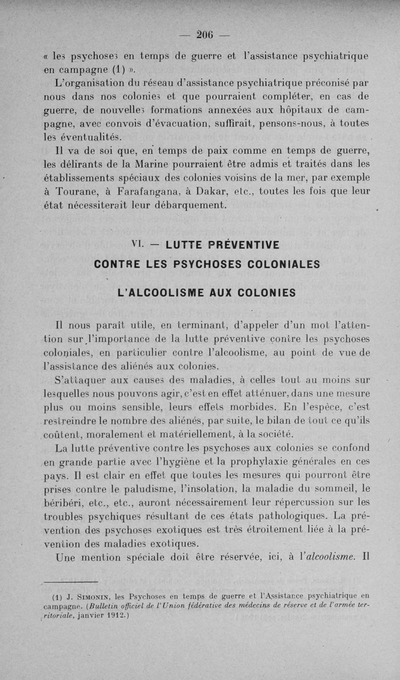 L'assistance des aliénés aux colonies