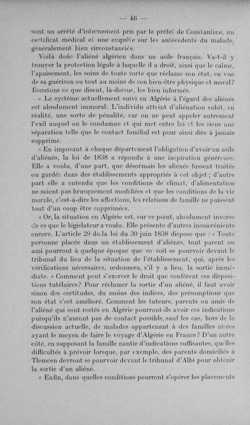 L'assistance des aliénés aux colonies