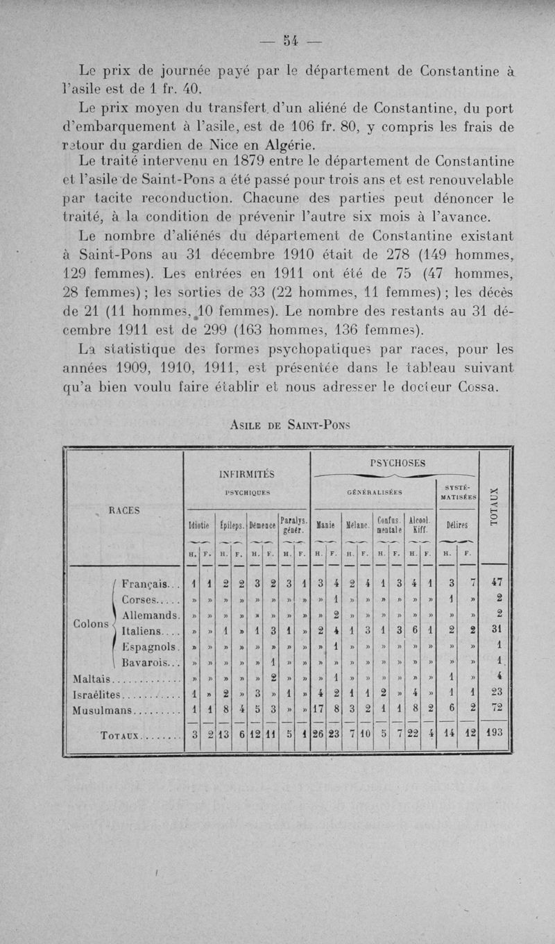 L'assistance des aliénés aux colonies
