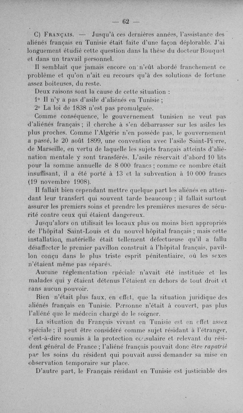 L'assistance des aliénés aux colonies