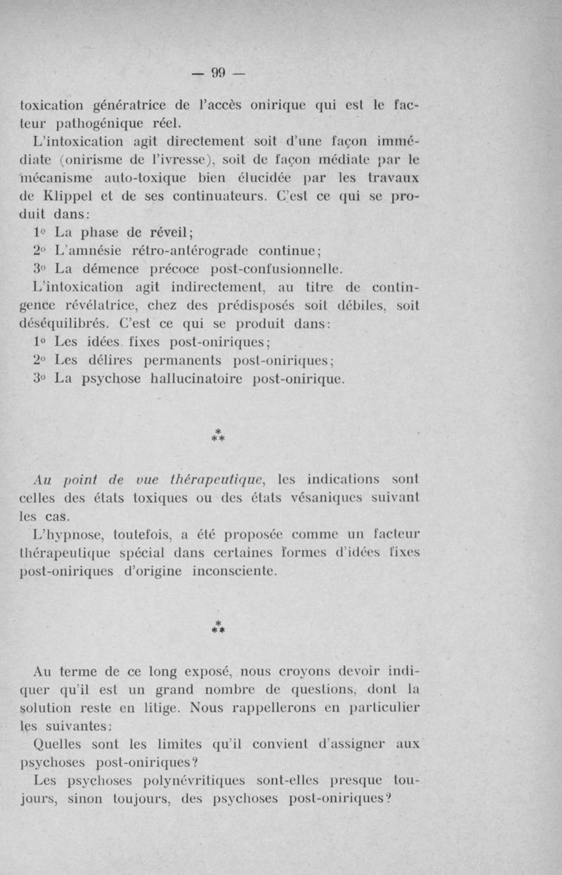 Les psychoses post-oniriques