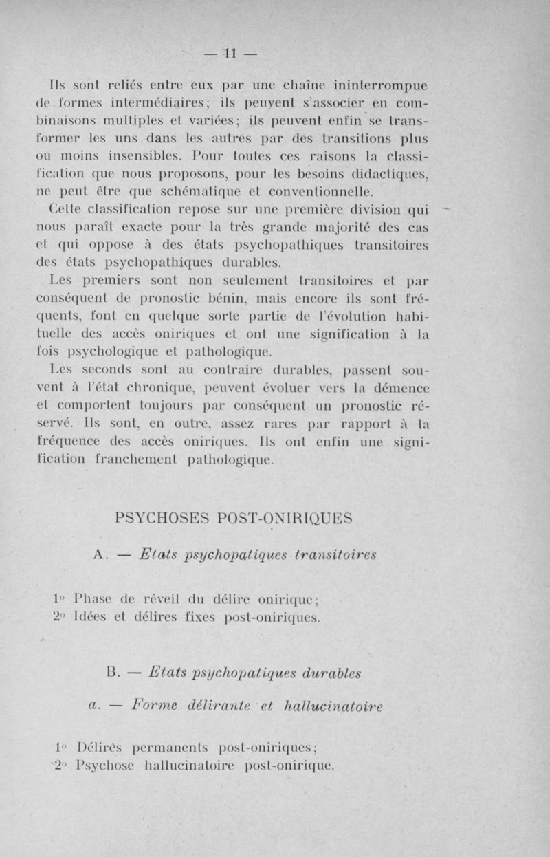 Les psychoses post-oniriques