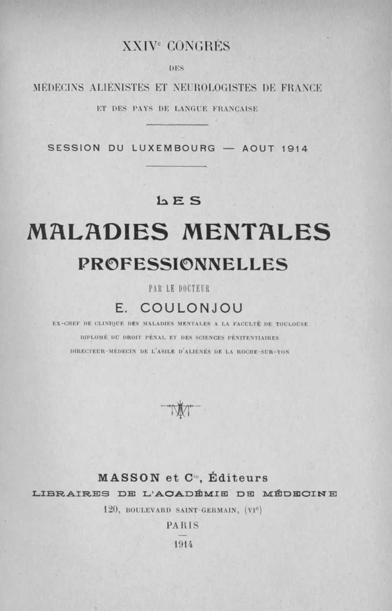 . - Paris : G. Masson, 1914.