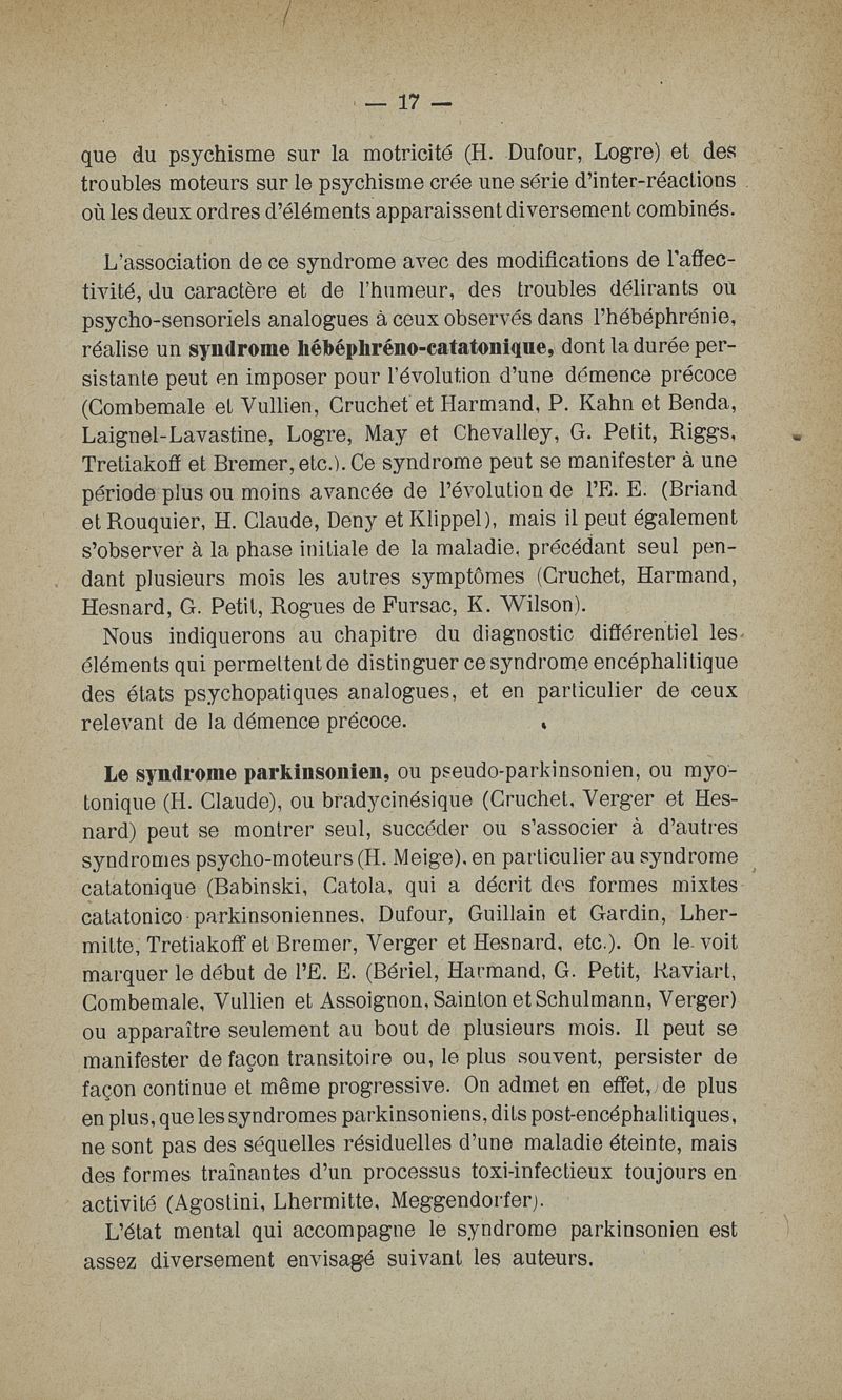 Les troubles mentaux dans l'Encéphalite Epidémique