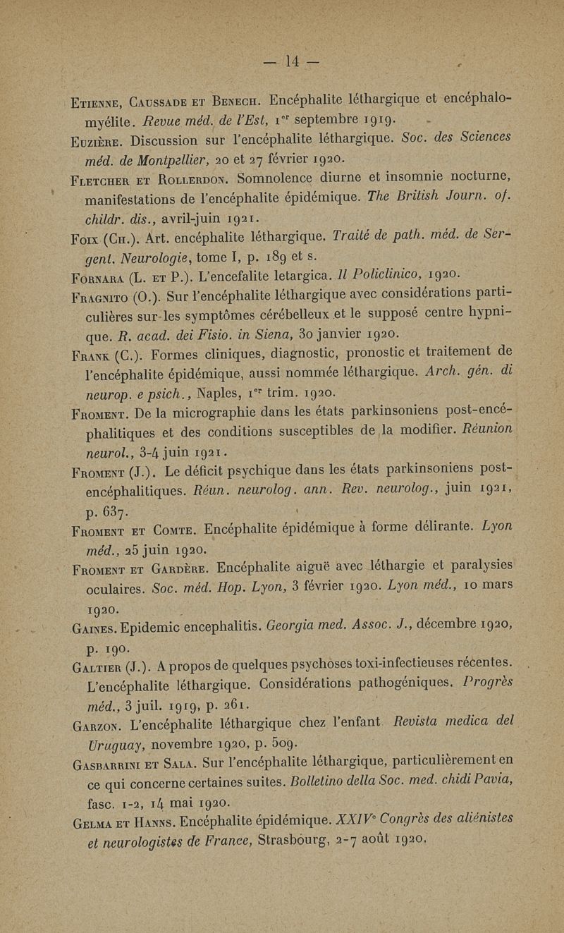 Les troubles mentaux dans l'Encéphalite Epidémique