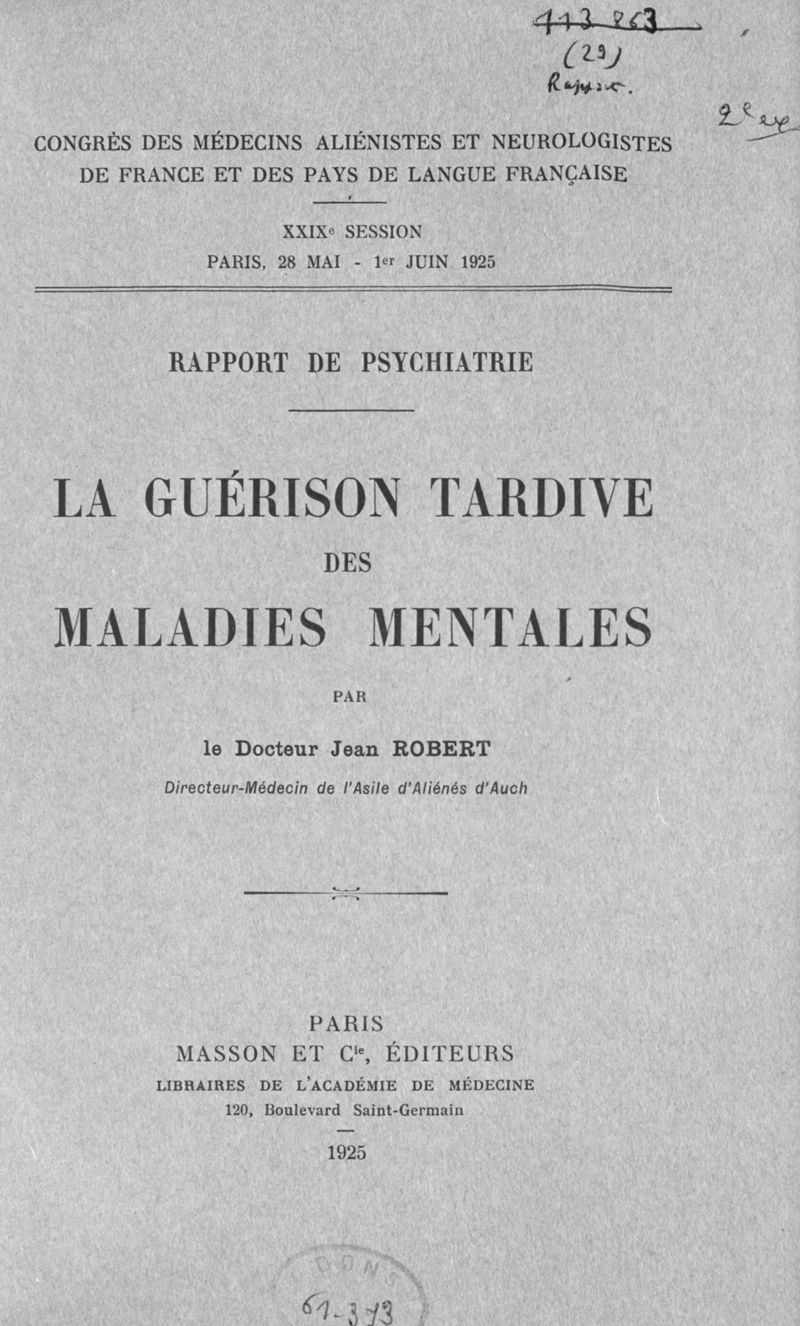 . - Paris : G. Masson, 1925.