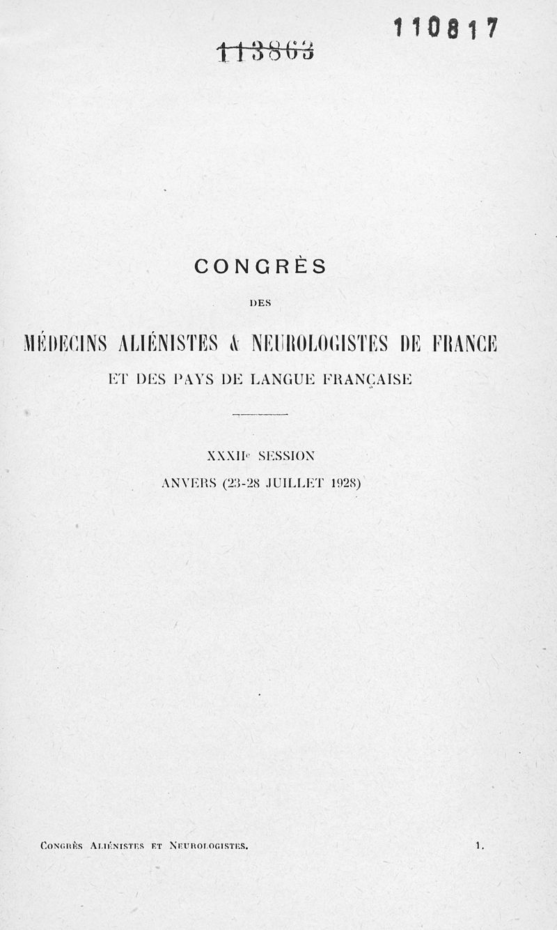 Congrès des médecins aliénistes et neurologistes de France et des pays de langue française. XXXII° session, Anvers (23-28 juillet 1928). Comptes rendus