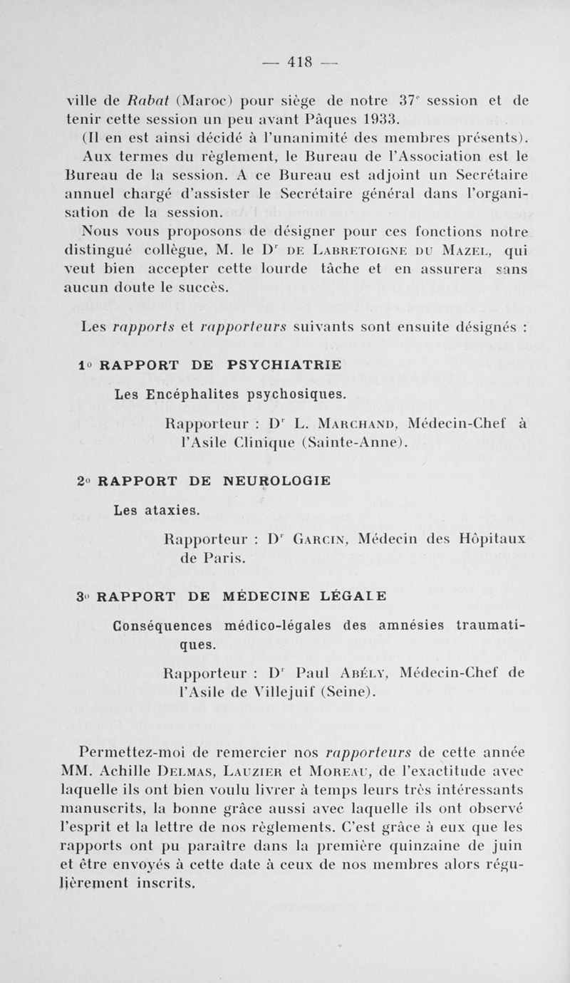 Congrès des médecins aliénistes et neurologistes de France et des pays de langue française. XXXV° session. Limoges (25-30 juillet 1932). Comptes rendus