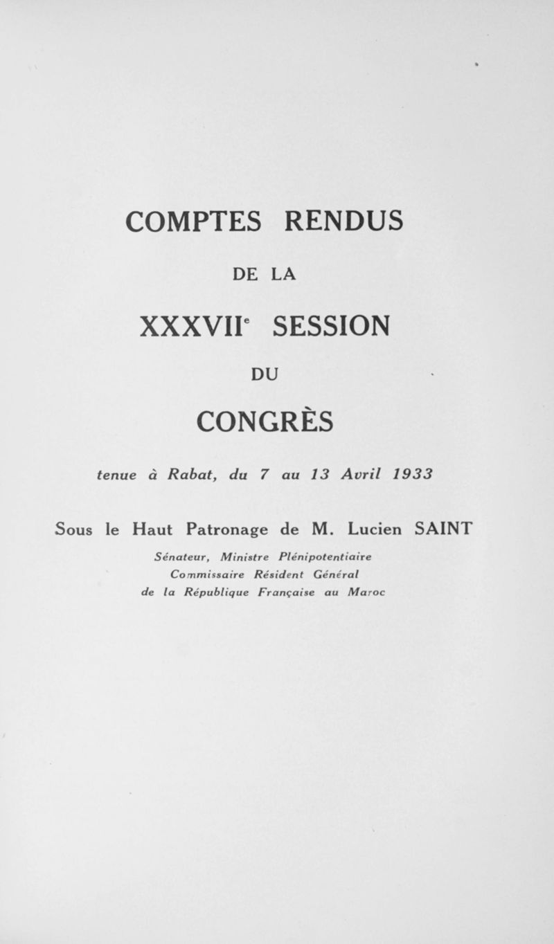 Congrès des médecins aliénistes et neurologistes de France et des pays de langue française. XXXV° session. Rabat (7-13 avril 1933). Comptes rendus