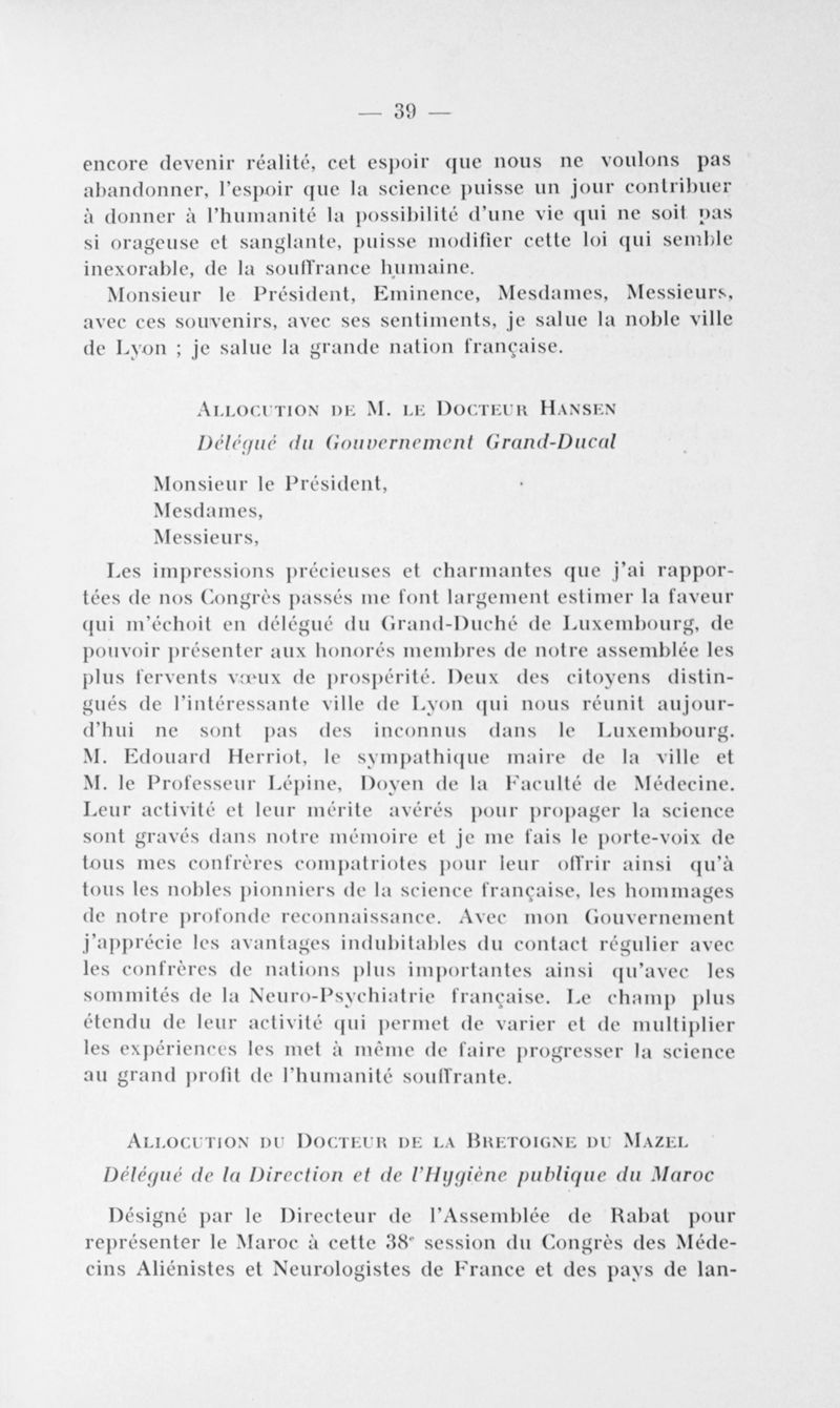 Congrès des médecins aliénistes et neurologistes de France et des pays de langue française. XXXV° session. Lyon (16-21 juillet 1934). Comptes rendus